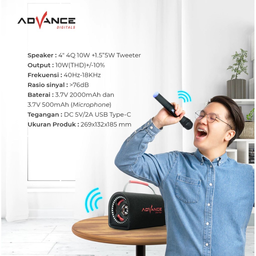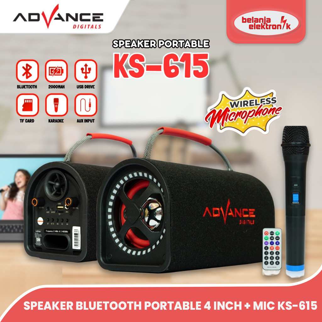 ADVANCE KS-615 SPEAKER 4 INCH BLUETOOTH PORTABLE KARAOKE FREE 1 MICROPHONE WIRELESS GARANSI RESMI 1 TAHUN
