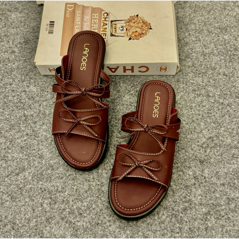 LANOES Sandal Wanita Platform Terbaru Sendal wanita Selop Pita Tali Empuk Viral Kekinian 2025