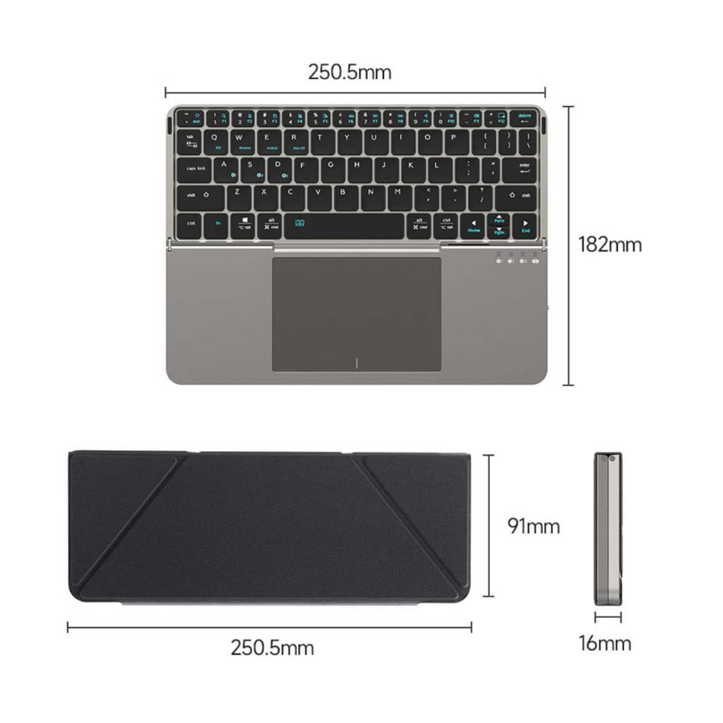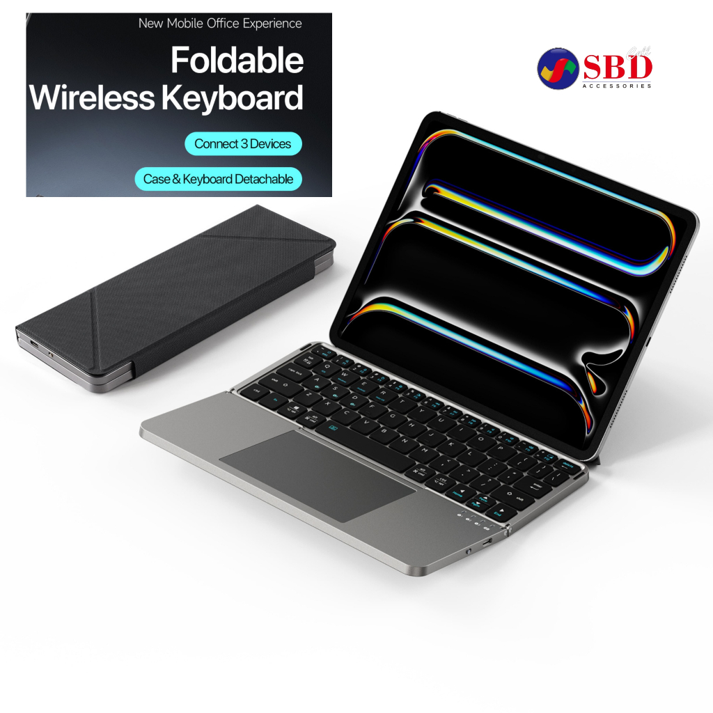DUXDUCIS Foldable Touch Wireless Keyboard Bluetooth Koneksi 3 Device Case Standing Universal Ultra Tipis & Super Portabe