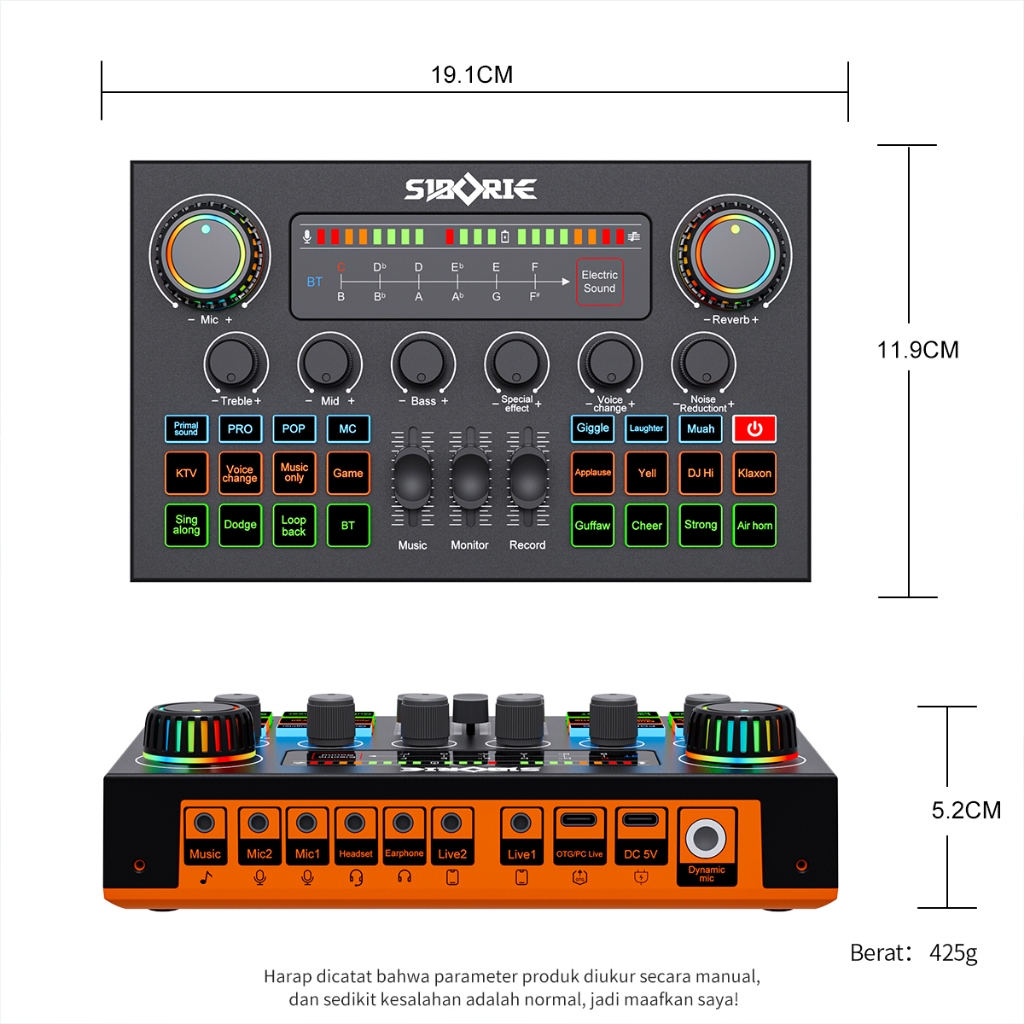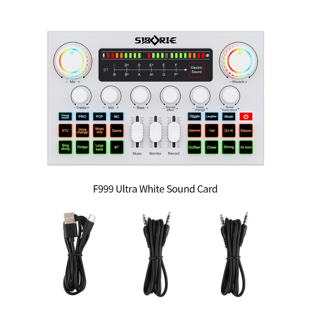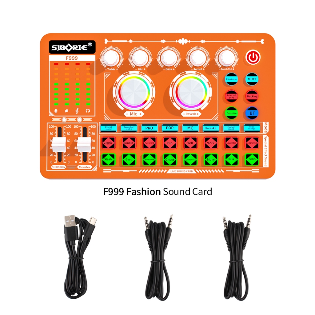 Siborie F999 Ultra Fashion Soundcard Mixer Audio Bluetooth Live Streaming Recording Karaoke - Sound Card External HP PC