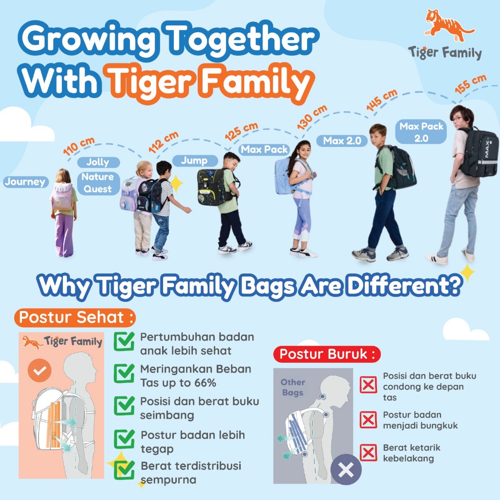 JOURNEY : TIGER FAMILY Ergonomic Bag - Backpack Tas Ransel Sekolah Anak TK Untuk Kesehatan | Anti Berat, Bungkuk, Scolio