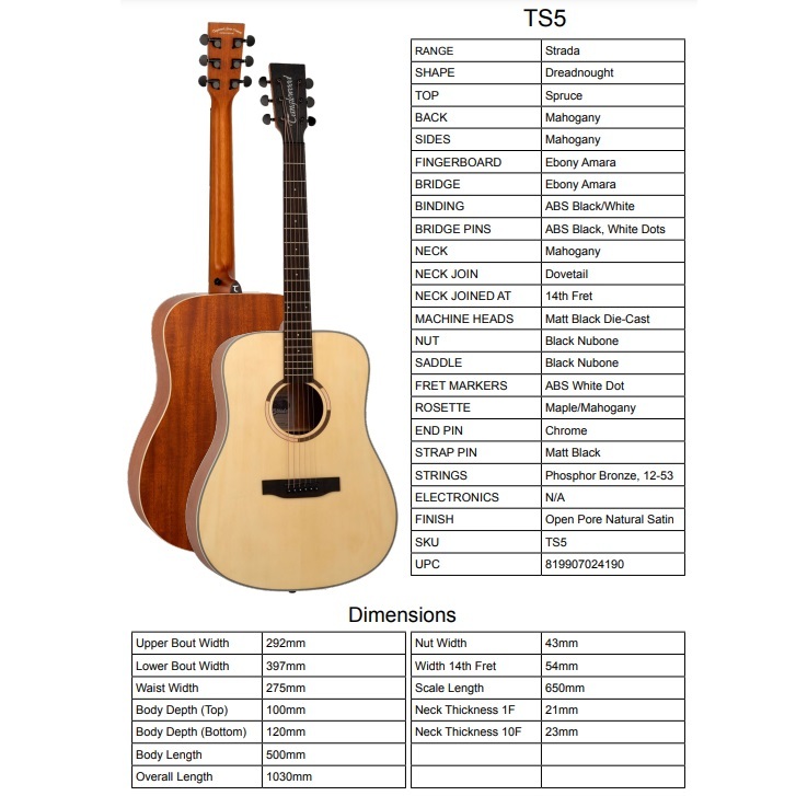 Tanglewood TS5 Top Spruce Dreadnought Gitar Akustik