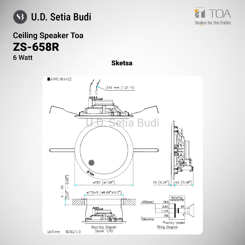 TOA ZS-658R Speaker Plafon Ceiling 6 Watt 658 R