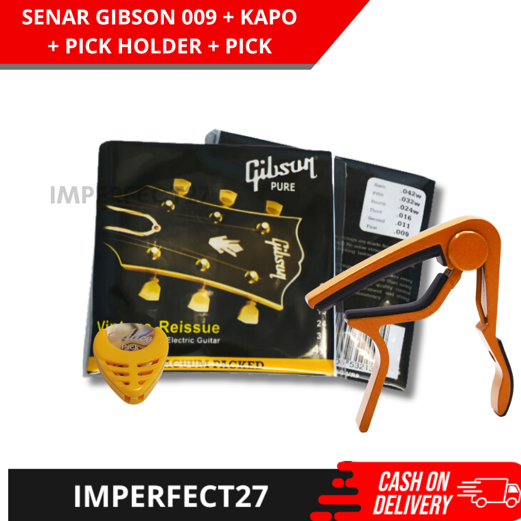 Senar Gitar GIBSON Elektrik Strings 009+ Capo + Pick Holder
