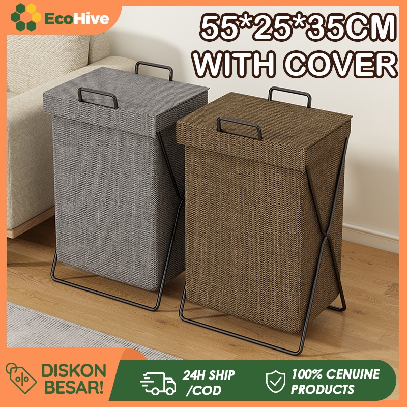 [STOCK] Laundry Bag Keranjang Pakaian Dengan Tutup Lipat Tempat Kotor Keranjang Baju Lipat Penyimpanan Pakaian Laundry Baskets Dengan Rangka