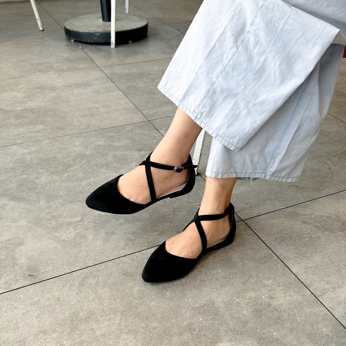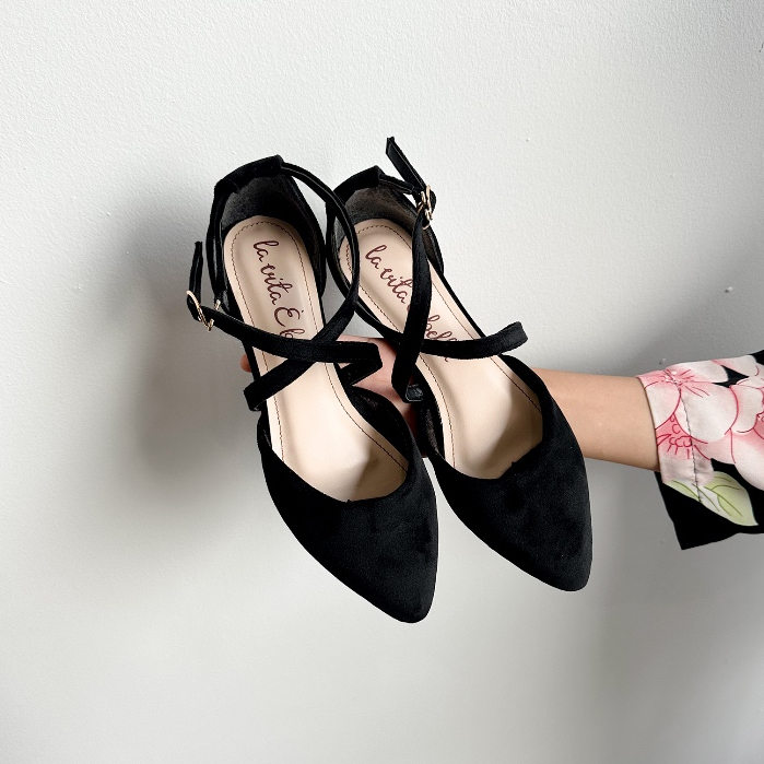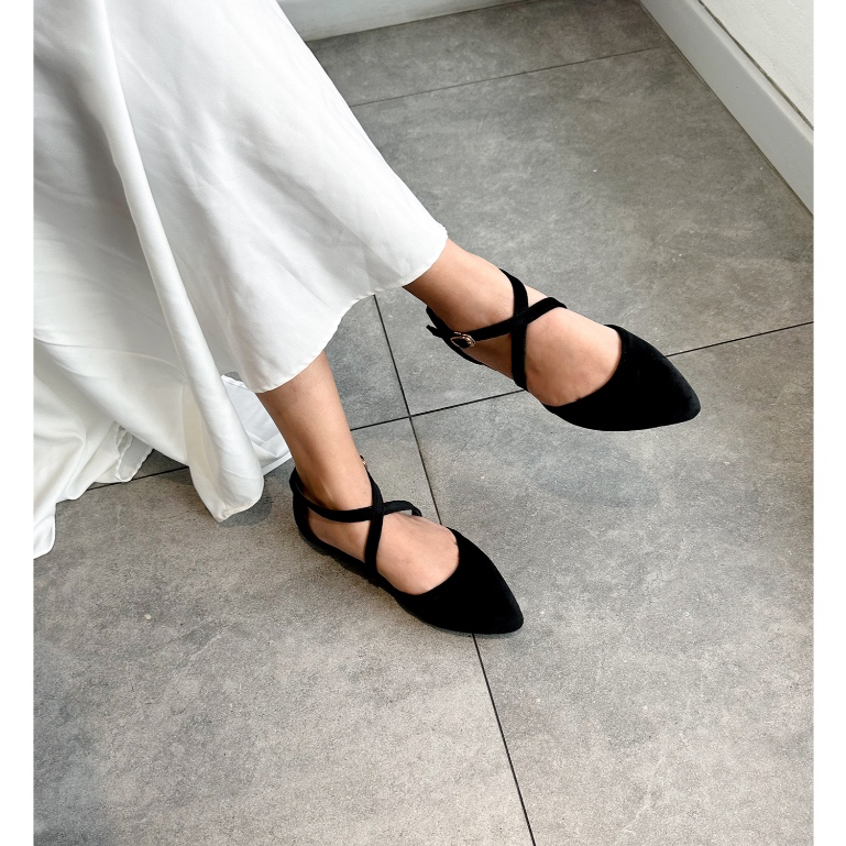 [NEW] La Vita E Bella Laura Crossed Strap Sandal Flat Teplek Wanita [LV 514] - Black