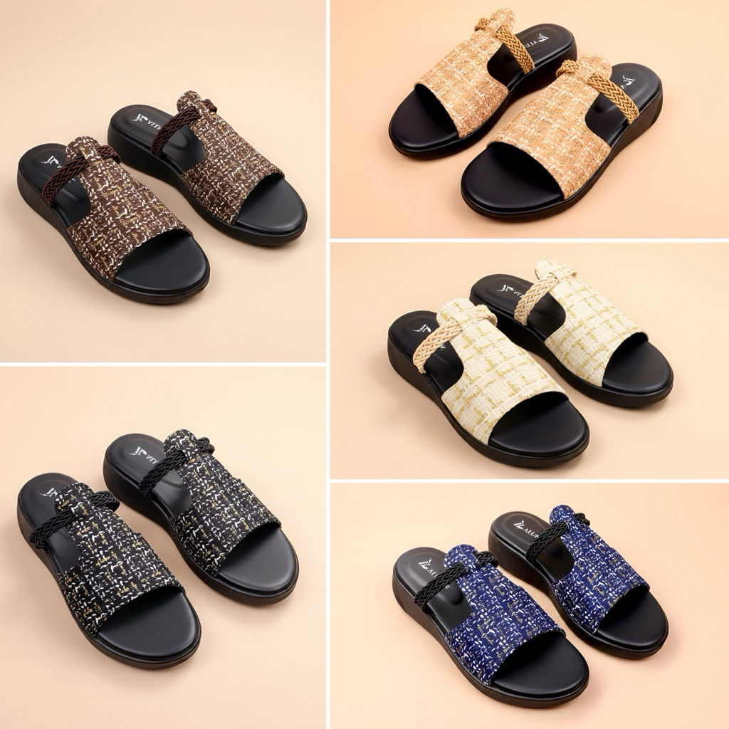 Aluna WANDA Sandal Slop Wanita Wedges Premium 3cm Elegan Simpel Kekinian Empuk Flat Pesta Casual Ori