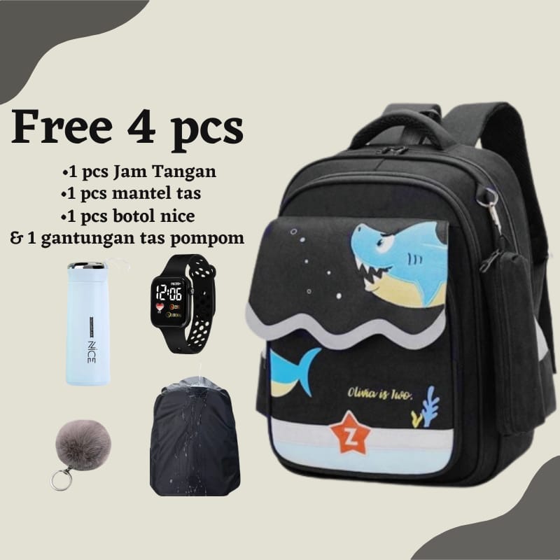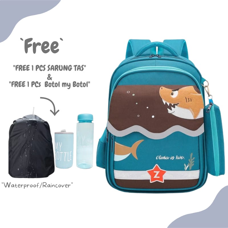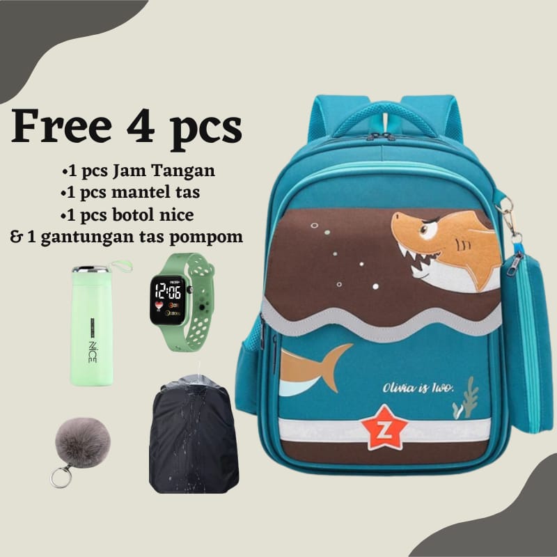Raja Tas Anak Ransel Sekolah Laki-laki Perempuan Sd Tk Smp Motif Kartun HIU