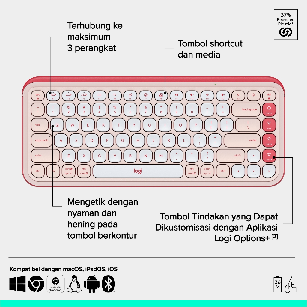 Logitech POP ICON KEYS Keyboard Bluetooth Wireless , Pengetikan Nyaman, Tombol yang Dapat Diprogram, Easy-Switch antara