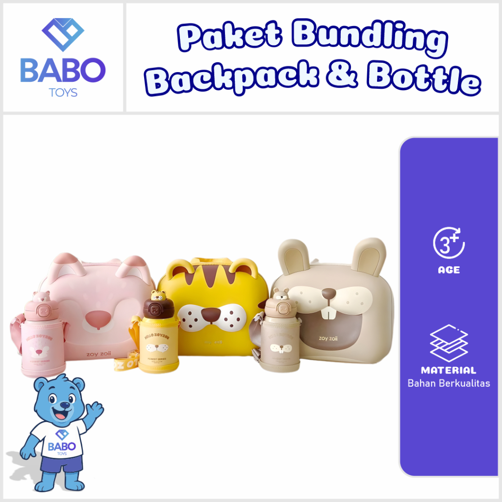 Paket Bundling Kombo 1 Set Tas Zoyzoii Animal Series Backpage With Portable Bottle Tiger Perlengkapan Sekolah Anak SD TK