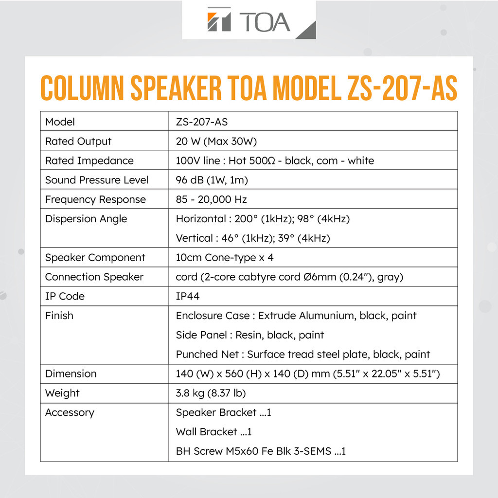 TOA Speaker Column 20 Watt New Model ZS 207AS