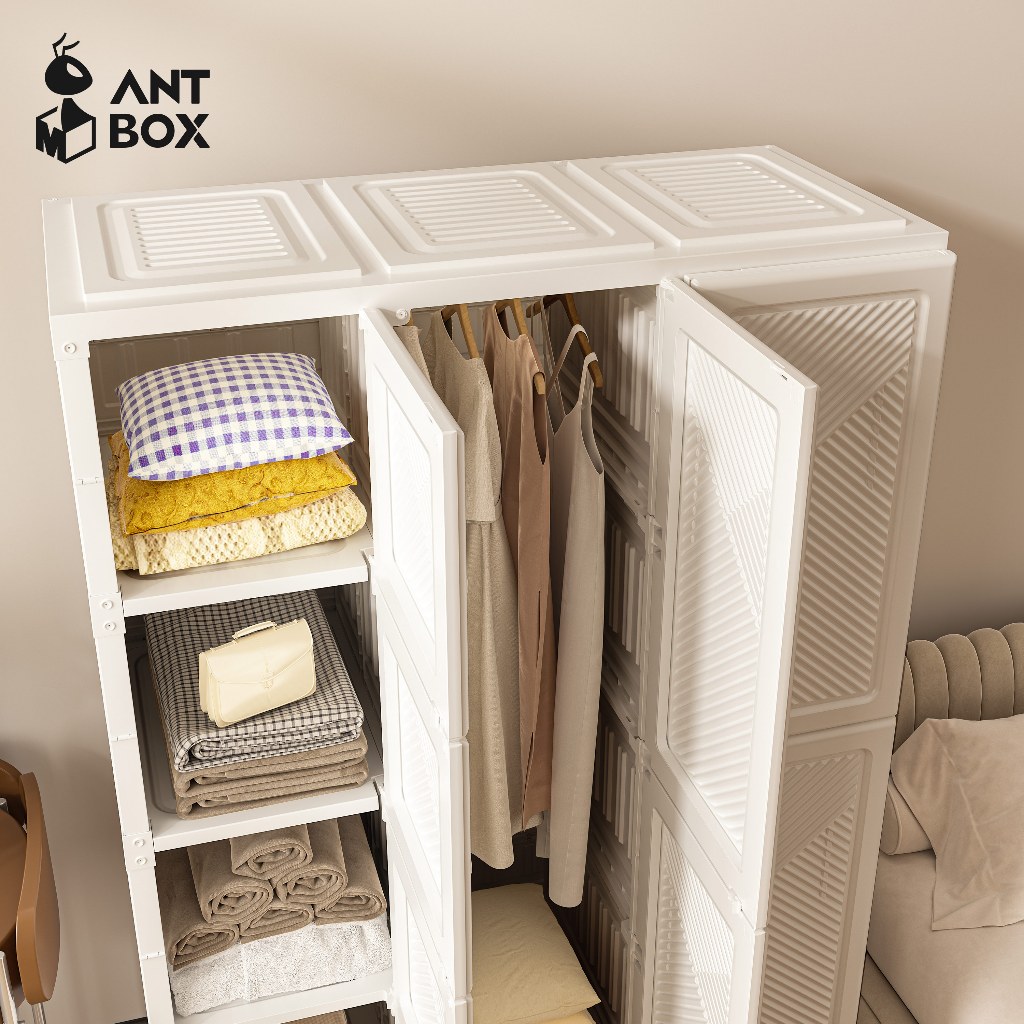 ANTBOX Lemari Pakaian Putih 15 Box 2 Gantungan Baju Lemari Baju Lipat Minimalis Bebas Instalasi