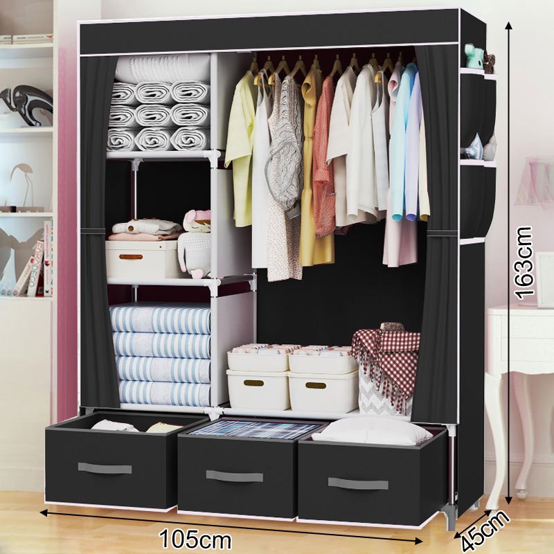 Lemari Pakaian Kain Portable Jumbo Dust Cover Anti Debu-3 Laci Multifungsi Kasar & Tahan Lama