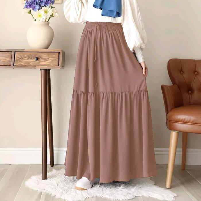 Rok Hitam Bawahan Muslimah Skirt Bahan Crinkle Terbaru Wanita Panjang Putih