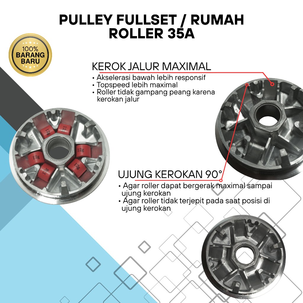 Pulley full set/Rumah Roller Paket Kirian Bubut Custom 35A FCC Vario 125/150 Old/New 13.8 14 14.2