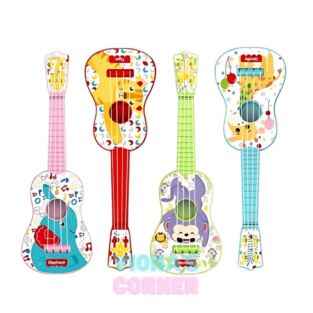 Gitar Anak Mainan Laki-Laki & Perempuan - Mini Kecil Ukulele Edukasi Musik Anak, Karakter Hewan