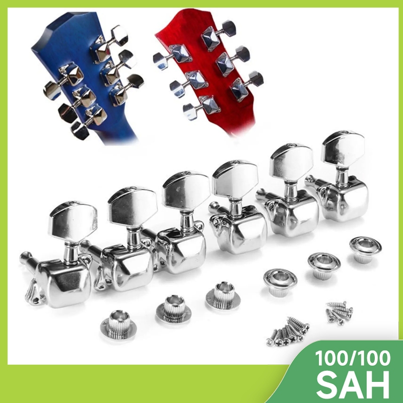 PLAYOU 6pcs gitar string tuning pasak logam gitar semi-tertutup tombol tuner mesin tuner untuk gitar