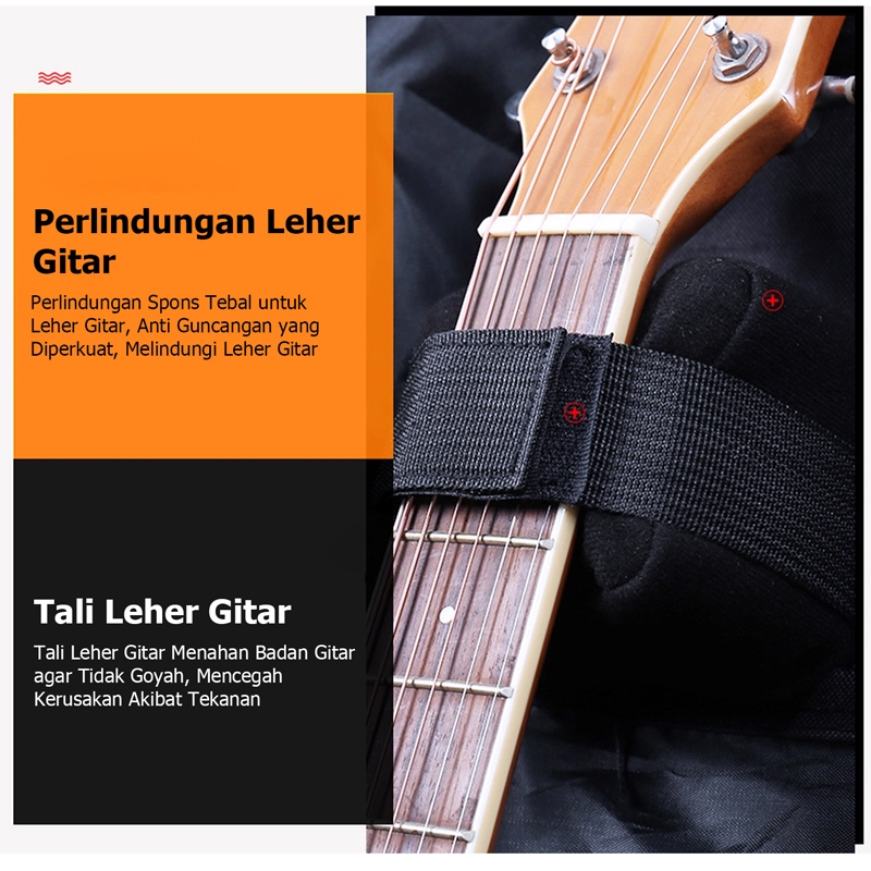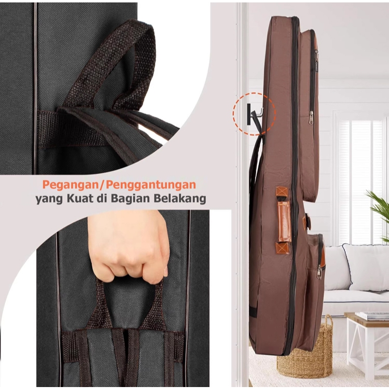 PLAYOU Tas gitar 42 dalam 6 kantong kotak gitar tahan air oxford kain spons tebal 10cm empuk untuk gitar klasik akustik