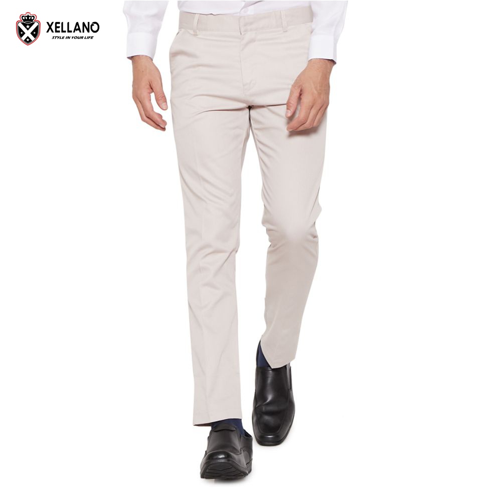 Xellano Celana Formal Kerja Pria Panjang Slimfit Xellano Drill Warna Krem 28-36