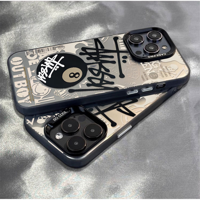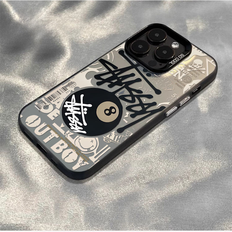 Stitch Berlubang Trendi Compatible For SAMSUNG Casing Ponsel, A25 A05 A05S A15 S24 ULTRA A12 A54 A14 A03 A11 A52 A50 A10s A34 A04, Casing Ponsel Silikon TPU Pola Biliar Hitam Grafiti Artistik 8