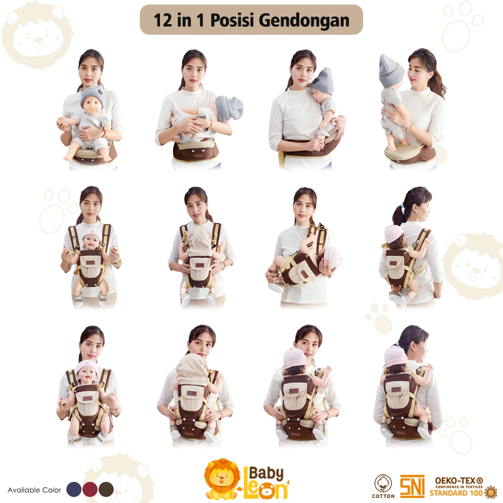 BABYLEON Gendongan Bayi 0-3Th 12in1 Gendongan Depan BABY LEON Hipseat Gendongan Bayi Depan + Penutup Kepala Gendongan An