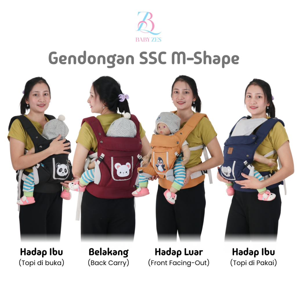 Baby Zes - Gendongan Bayi SSC Gendongan M-Shape Gendongan Depan Belakang 4 Posisi Karakter