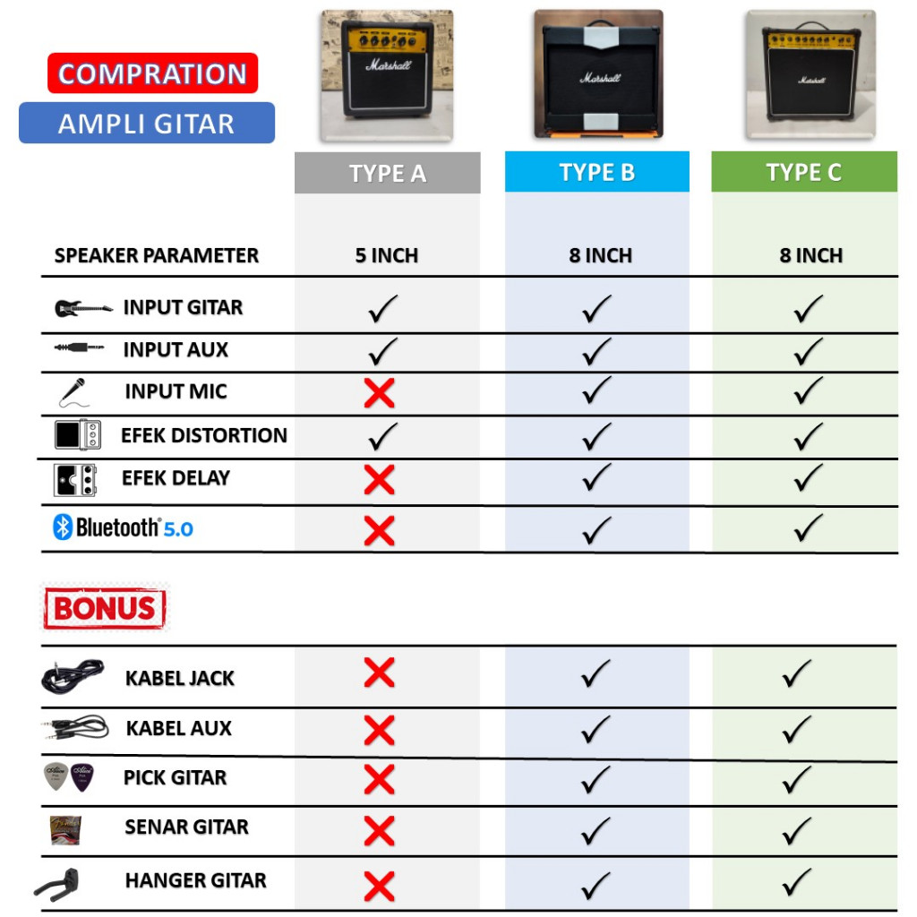 Ampli gitar & bass 8 inc 3 input plus bluetooth 5.0 bisa untuk karaoke efek distorsi,reverb, delay,chrous bergaransi