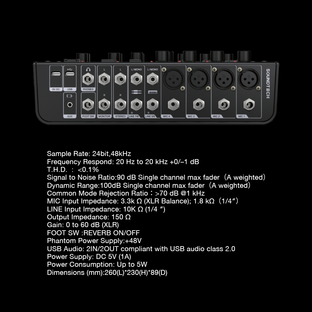 SOUNDTECH SMIX 8.0 Audio Mixer Digital with 8 Channel