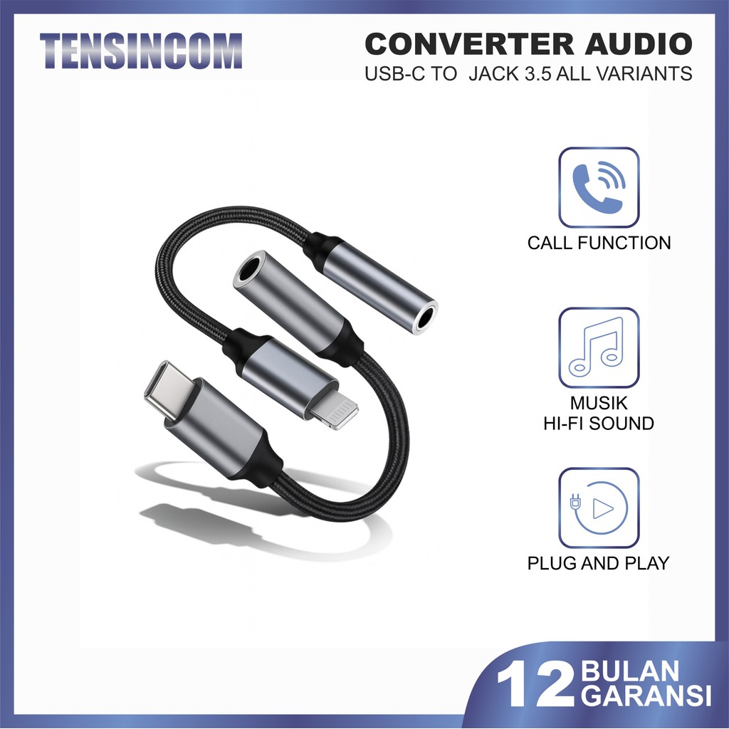 Adapter Type C to Audio Male/Lightning to AUX 3.5mm Converter Headphone Smartphone Jack