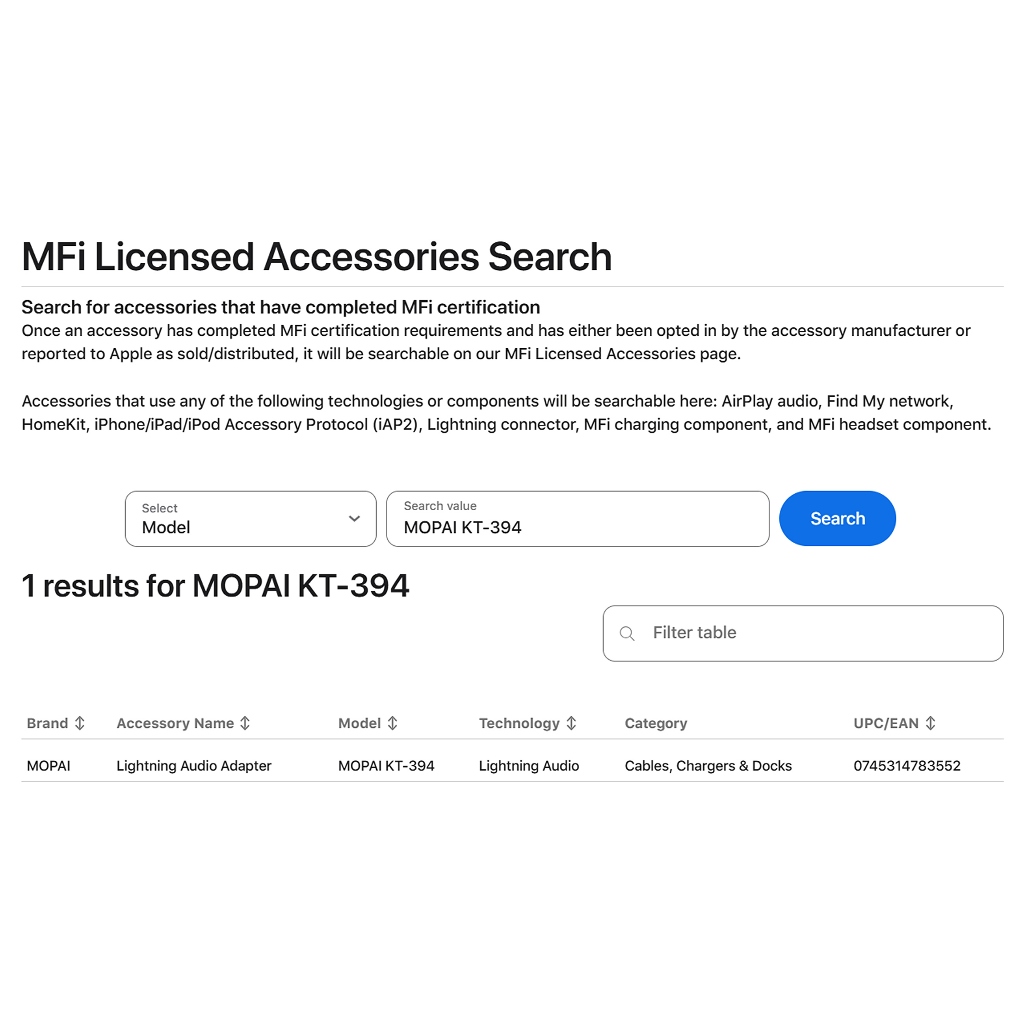 MOPAI - KT394 Converter iPhone (MFI) LIGHTNING to JACK 3.5MM Ori ic Headset audio iPad