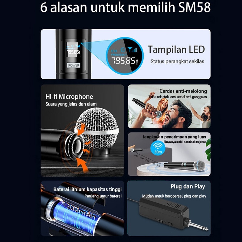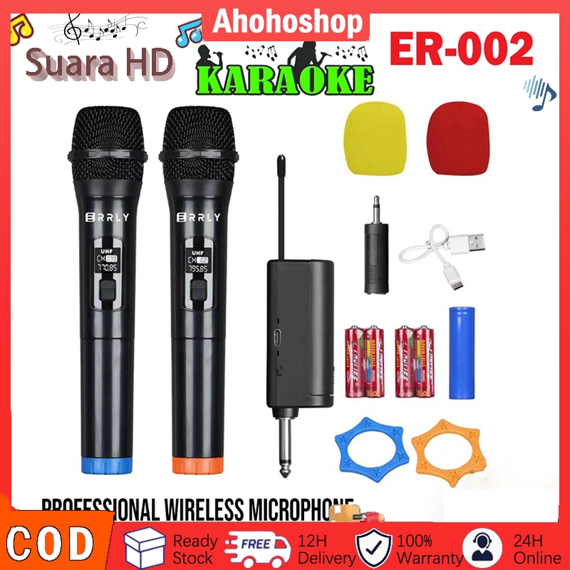 【Jarak 50M】Mic Karaoke Microphone Wireless Tanpa Kabel MIC2 MIC1 ERRLY ER001 Single ER002 Dual Digital LED Mic Karaoke GENGGAM