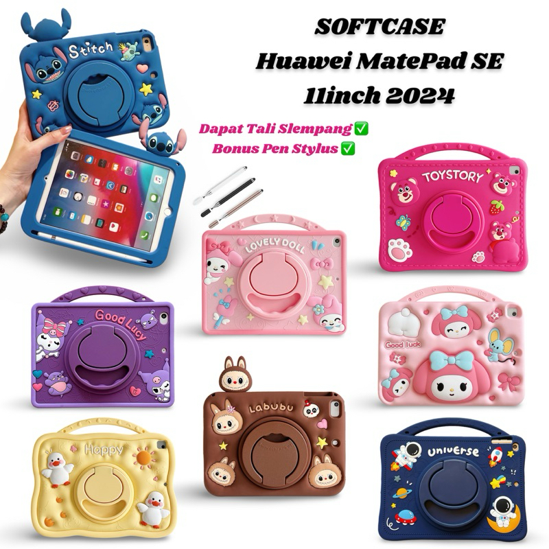 Case Astronot Kuromi for Huawei MatePad SE 11 inch 2024 / MatePad 11 2023 / MatePad 11 2021 Softcase Motif Karakter Anak Free Bonus Tali dan Stylus Pen Casing Standing