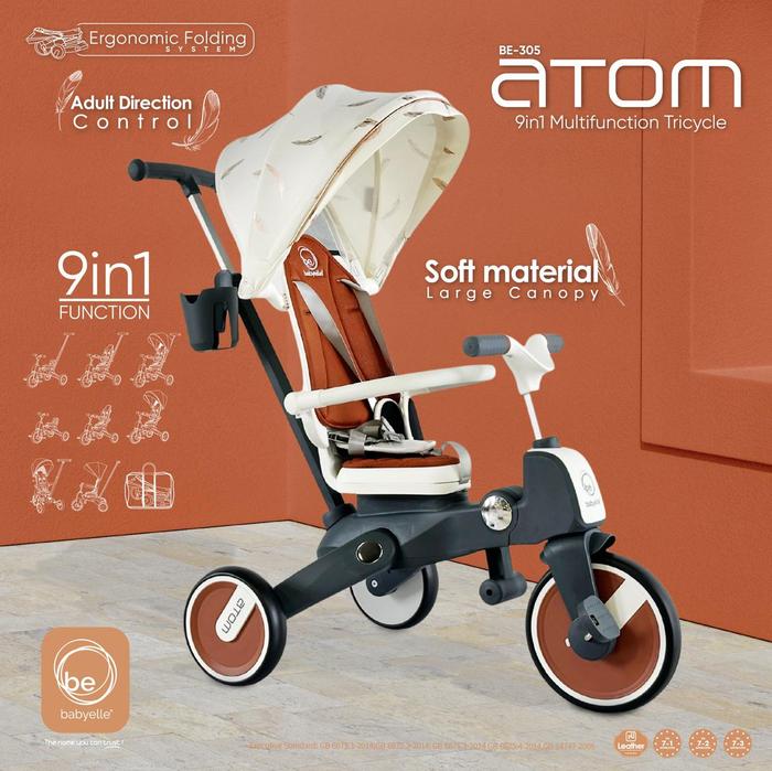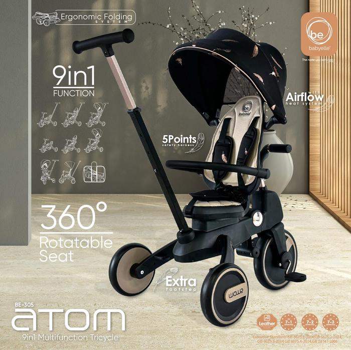 Babyelle Atom 9in1 Multifunction Tricycle BE 305 Dengan Bahan Baik dan Mudah Dibawa