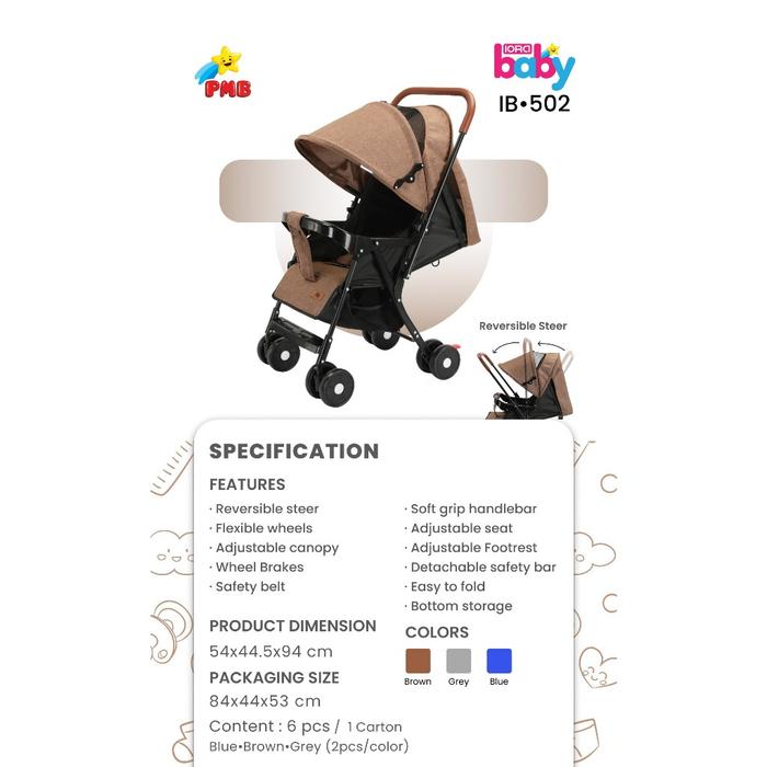BABY STROLLER MURAHKERETA DORONG BAYI BISA REBAH,DUDUK DAN BERSANDARBABY STROLLER BY IORA IB-502