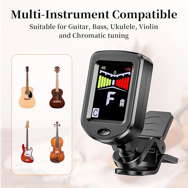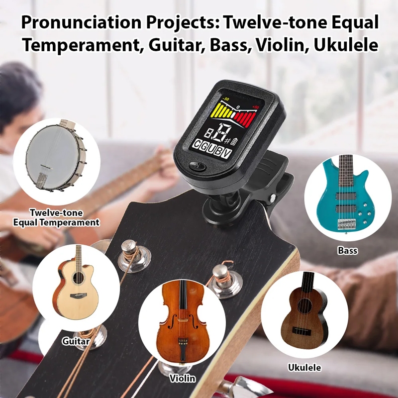 PLAYOU Tuner gitar 360 derajat rotatable clip-on function metronome tuner elektronik untuk ukulele bass gitar
