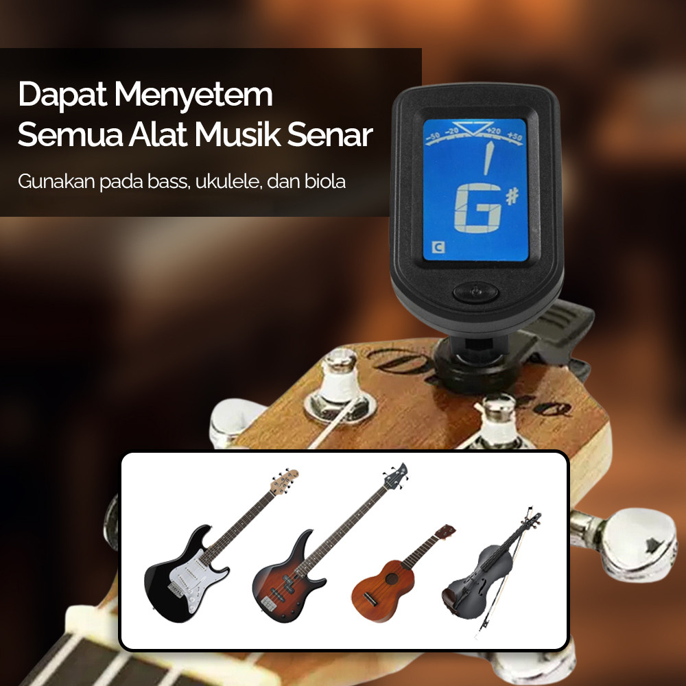 Tuner Gitar Digital Chromatic LCD Clip Universal Stem Akurat Bass Ukulele Biola