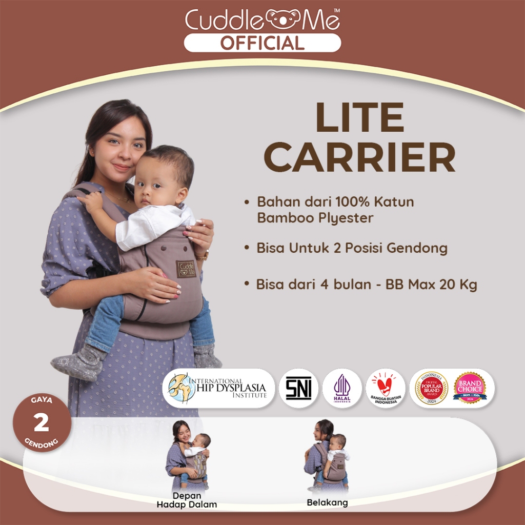 Gendongan Bayi 4 Bulan - 3 th M Shape 2 Posisi Depan Belakang CuddleMe LITE CARRIER SOLID