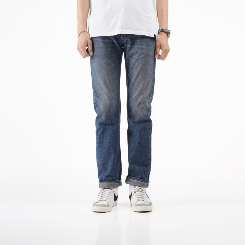 Volkvog Jeans Santiago Celana Panjang Washed Denim Pria Slim Straight Biru