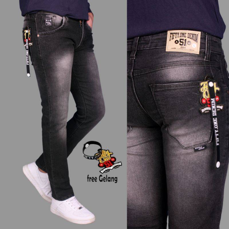 FIFTYONE51 TERLARIS Celana Pria Jeans Panjang SLIMFIT Calana warna Black jazz Scrup Clor Hitam Polos