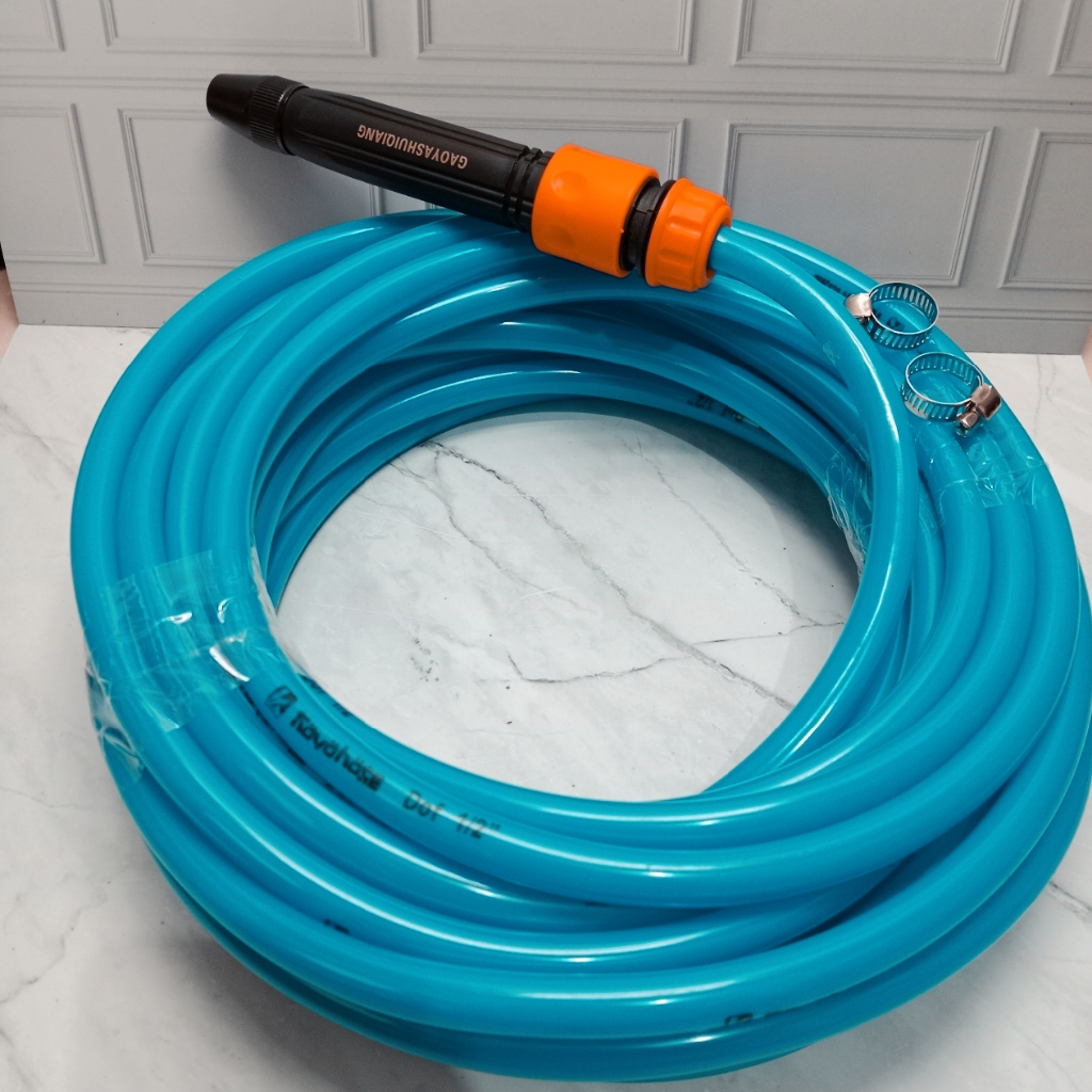 selang air elastis dop satu set dengan semprotan lurus hitam uk 1/2 in panjang 2,5,10,15 meter
