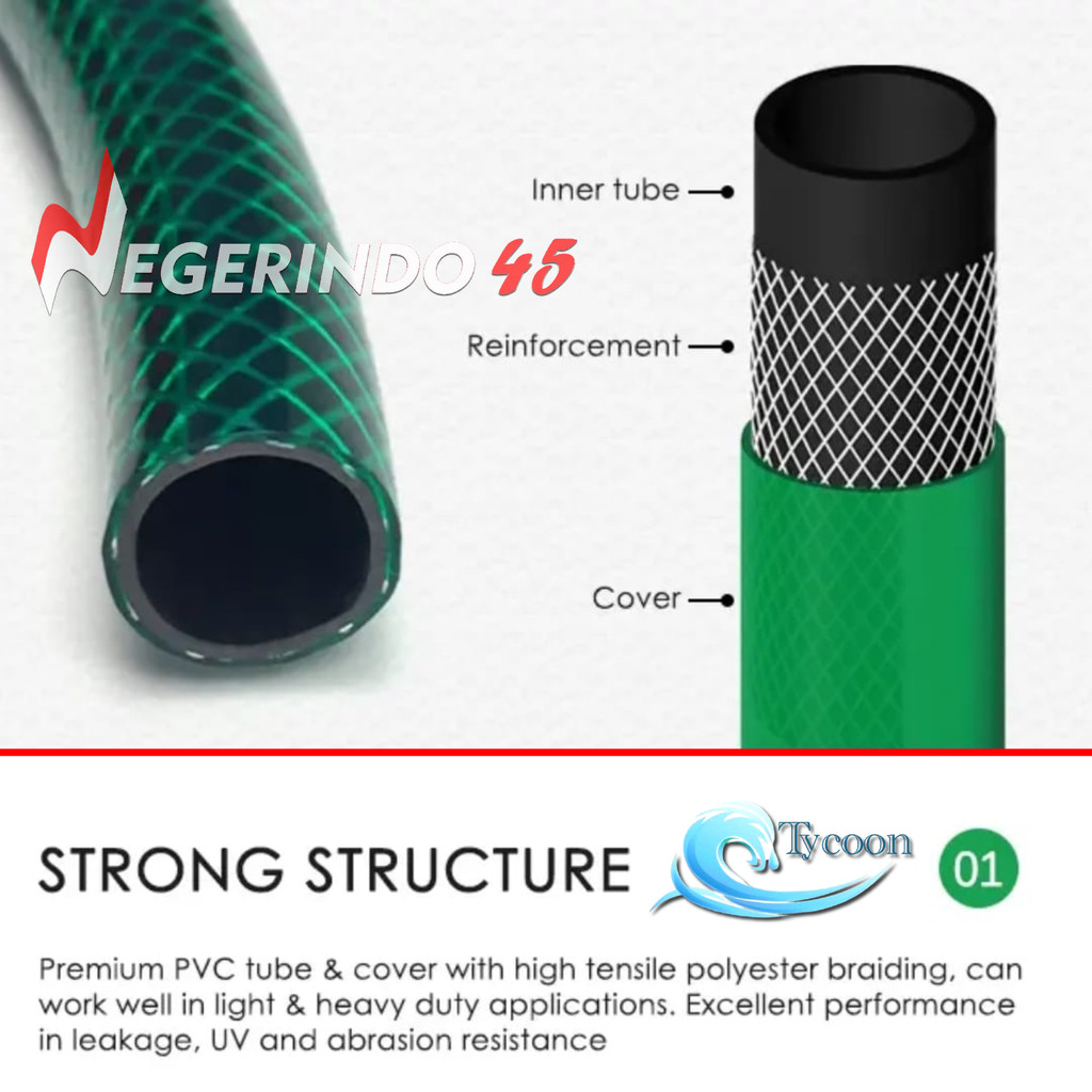 TYCOON SELANG TAMAN AIR 5/8 INCH GARDEN HOSE SERAT BENANG HIJAU ANTI LUMUT
