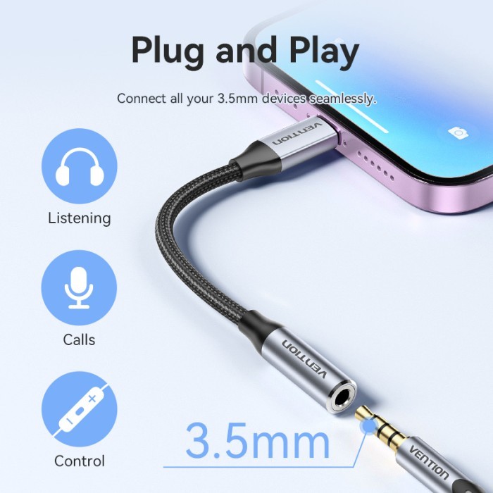 Vention Converter Lightning Male to Earphone Jack Audio 3.5mm Aux Female Audio Adapter iPhone - BMB