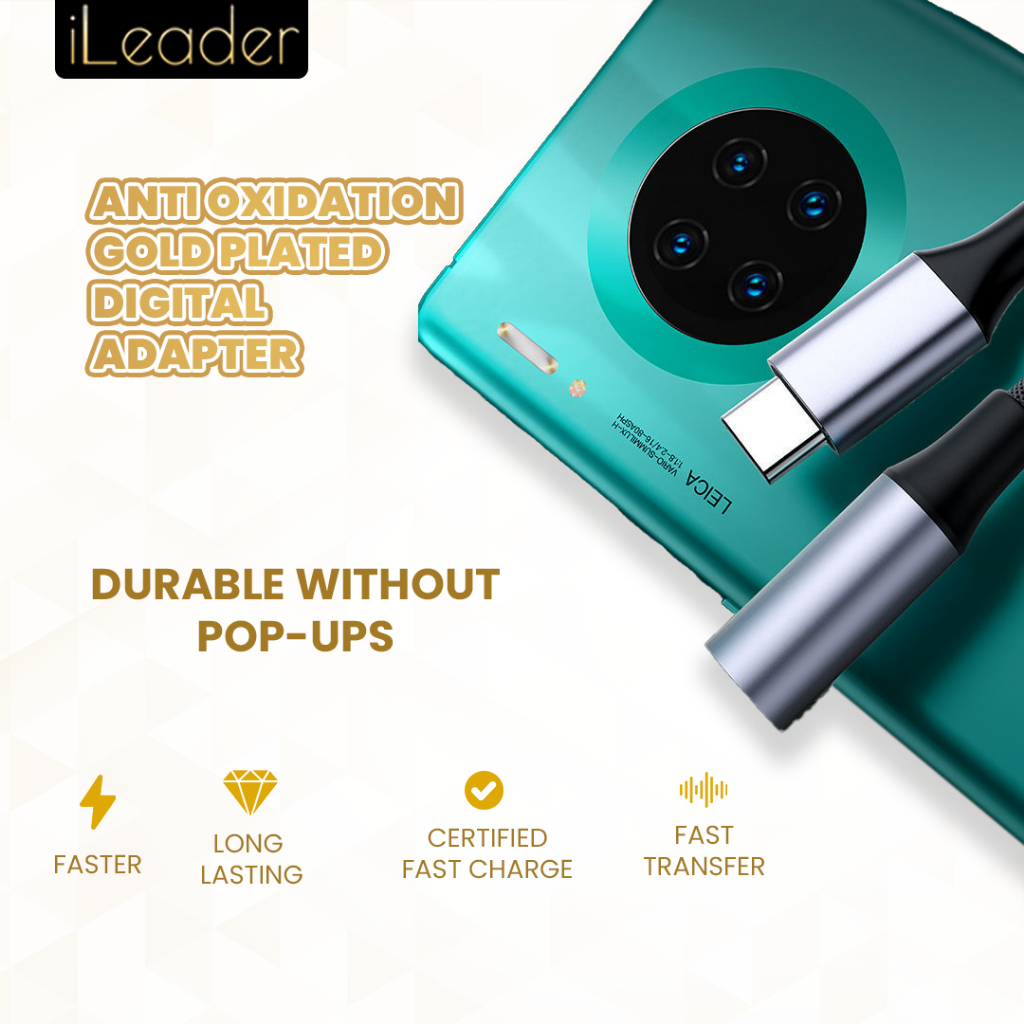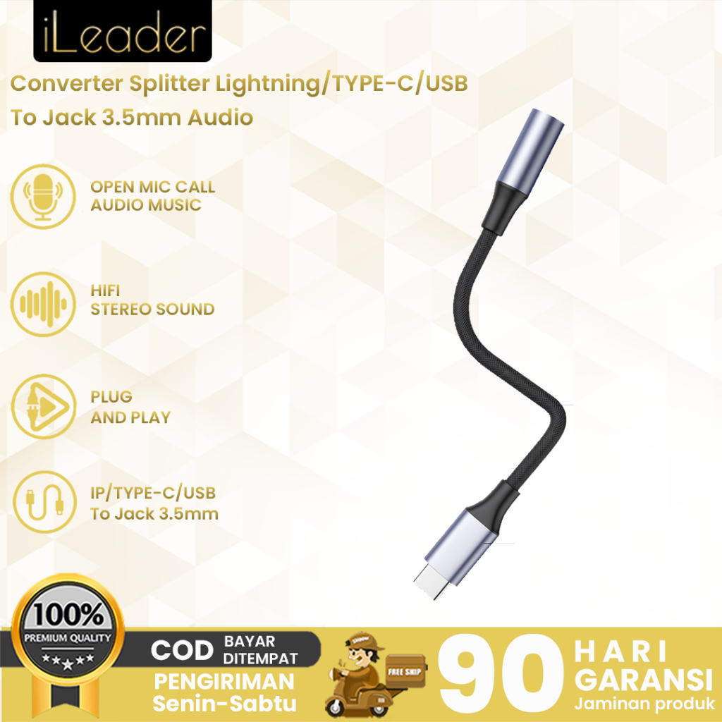 iLeader Converter Splitter Type C/USB A/Lightning To Jack 3.5mm For Audio
