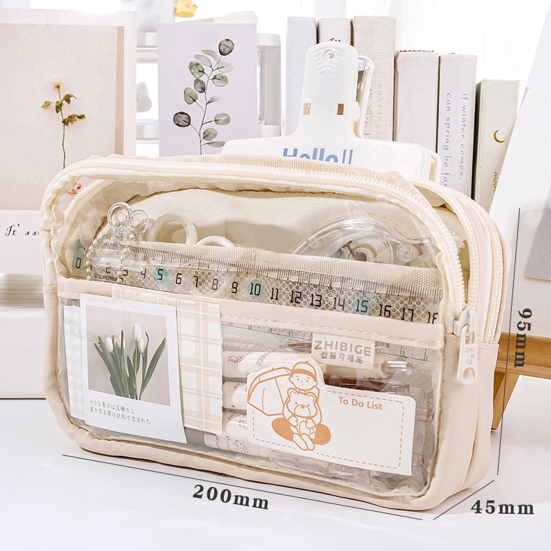 Kapasitas Besa Kotak Pensil Transparan Aesthetic Pencil Case Pen Pouch Large Tempat Pensil Lucu Stationery Organizer