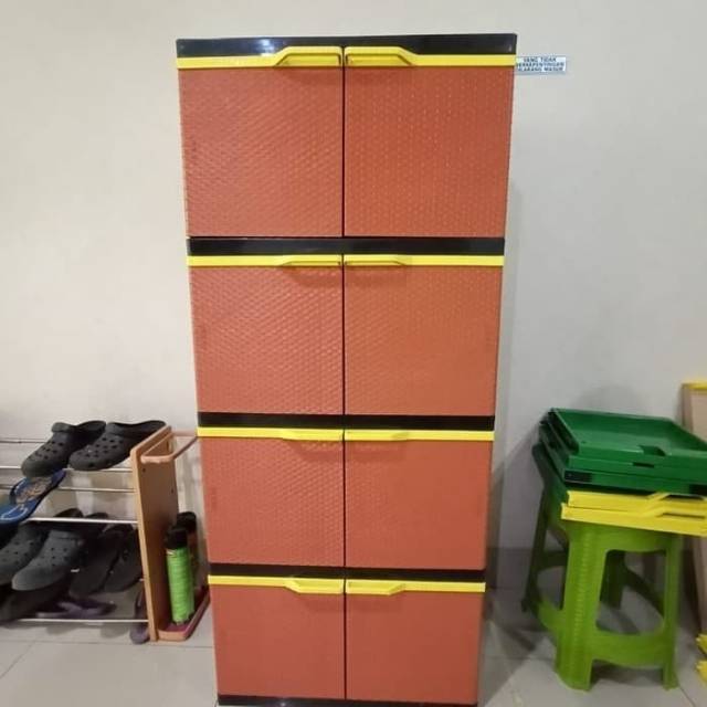 LEMARI JUMBO PLASTIK MOTIF ROTAN 8 PINTU SUSUN 4 Anti Rayap Murah BAHAN TEBAL (BERGARANSI )