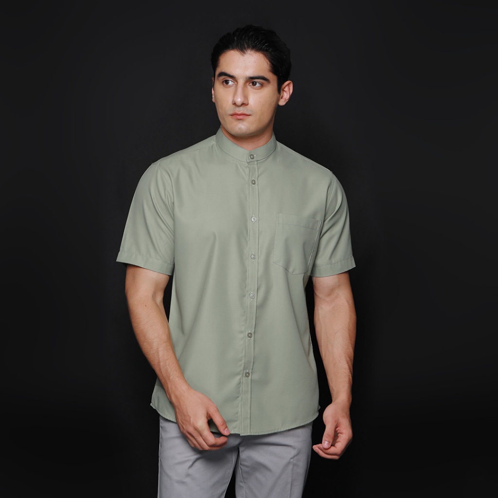 Simple Perfect Kemeja Pria Lengan Pendek Kerah Shanghai Polos | Kemeja Koko Solid Basic