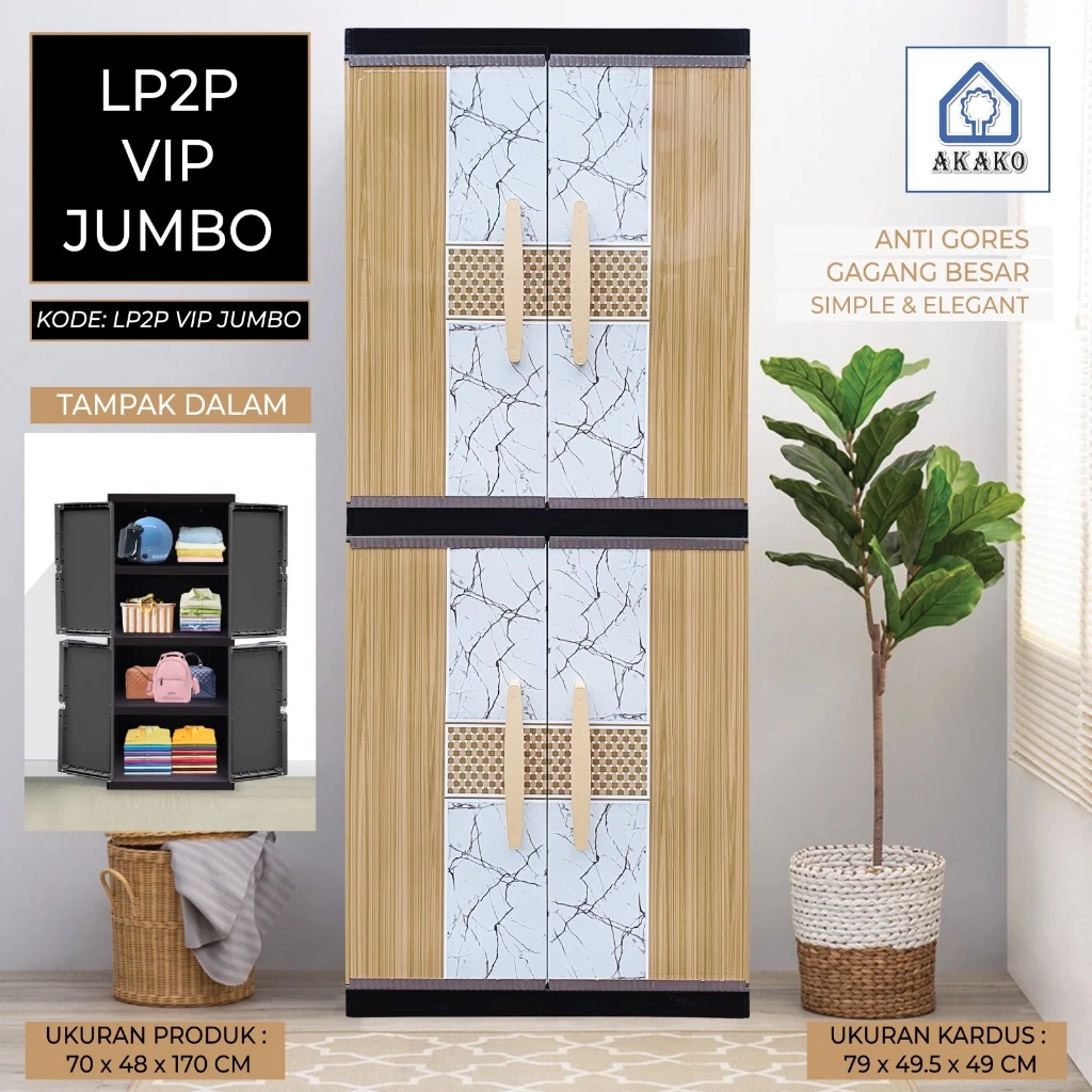 AKAKO - Lemari Pakaian Plastik Jumbo LP2P VIP Tanpa Kaca Gantung / Full Rak