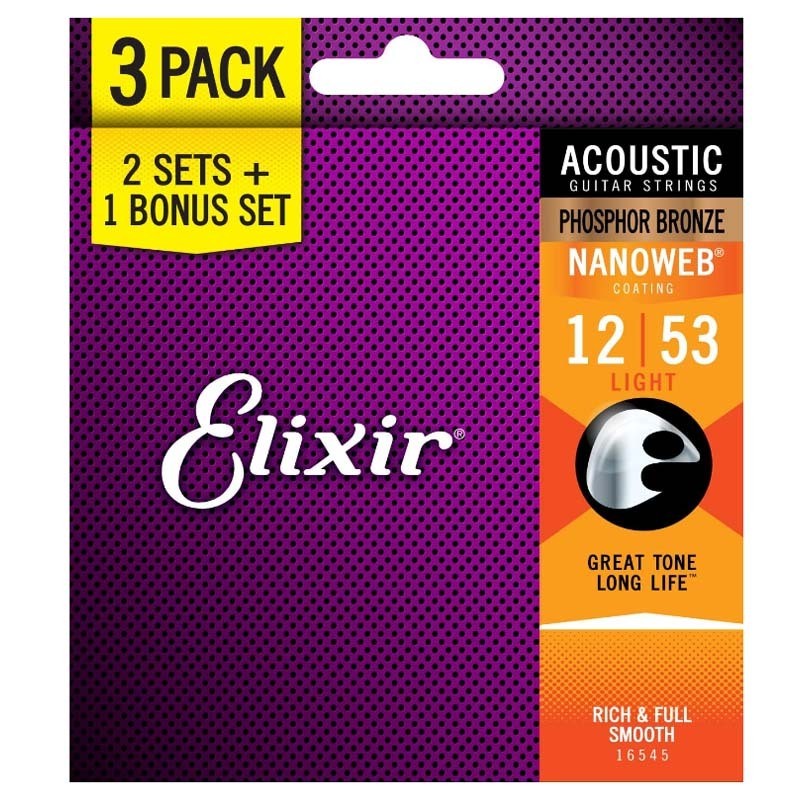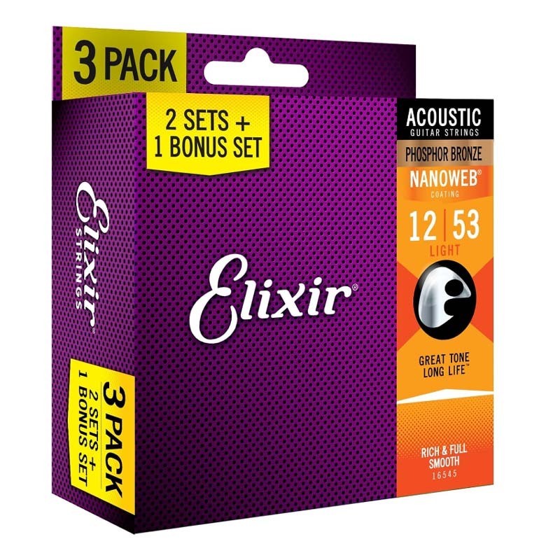 Senar Gitar Akustik Elixir Strings 16545/16538 dengan Lapisan NANOWEB, 3 Buah, Ringan/Cahaya Kustom