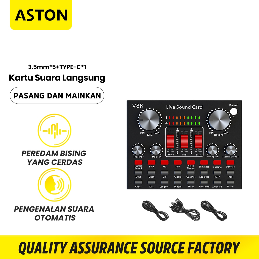 ASTON Mixer Audio SoundCard AT-US36 BLACK 9-IN-1 Port With 3.5mm7 Type C Bluetooth Live Multifungsi