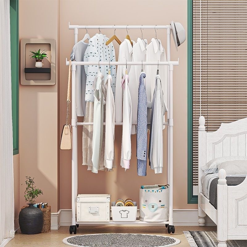 Stand Hanger Double / Rak Gantungan / Jemuran Baju Pakaian Single Roda 4 - Iron Material